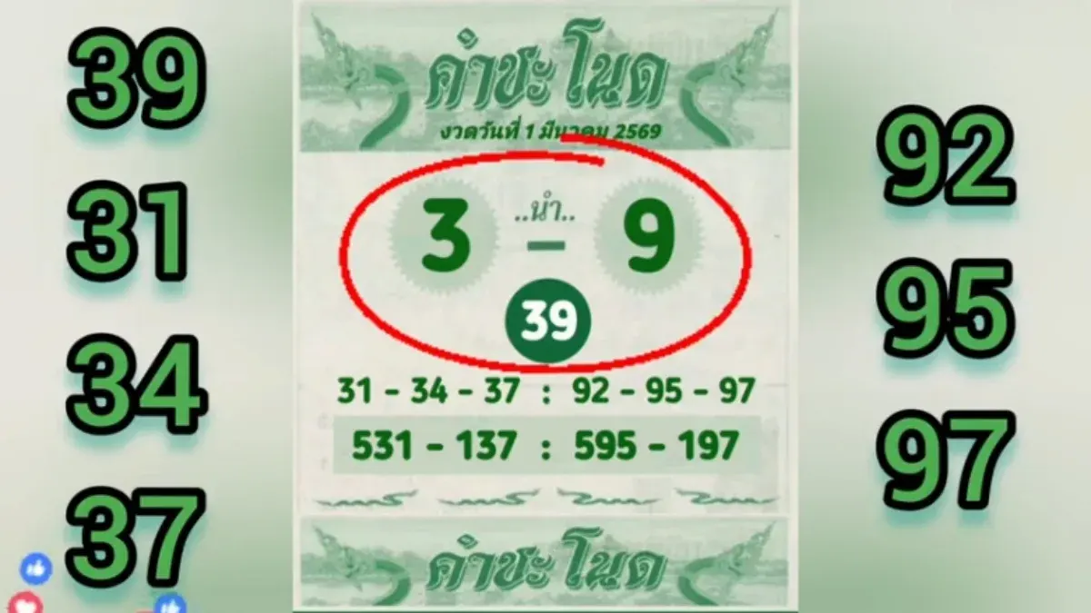 ก้าวเข้าสู่การลุ้นโชคในงวดประจำวันที่ 1 มีนาคม 2569 บรรยากาศความหวังเริ่มกลับมาคึกคักอีกครั้ง โดยเฉพาะแนวทางยอดนิยมจากสำนักศักดิ์สิทธิ์อย่าง "คำชะโนด" ที่หลายคนเฝ้ารอเพื่อนำไปเป็นสถิติในการพิจารณาเสี่ยงโชค บทความนี้จะพาทุกคนไปสำรวจตัวเลขเด่นที่น่าสนใจ ทั้งจากความเชื่อทางสายมูและตัวเลขเชิงสถิติที่เคยเกิดขึ้นจริงในช่วง 10 ปีที่ผ่านมา เพื่อเป็นแนวทางในการประกอบการตัดสินใจสำหรับงวดที่กำลังจะถึงนี้