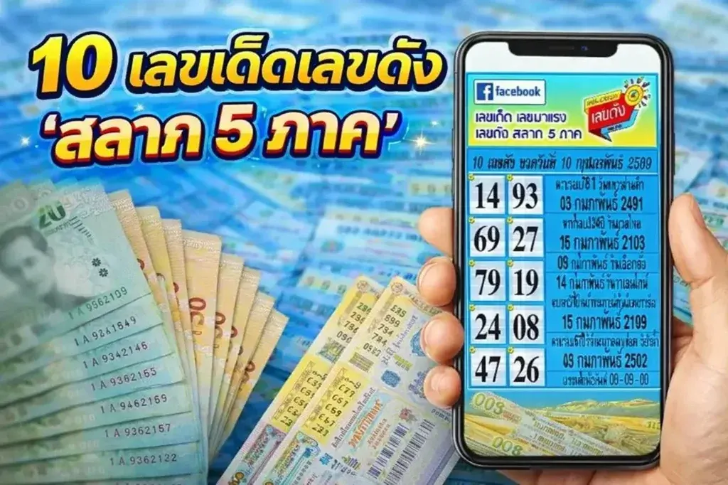 10 เลขเด็ดเลขดัง "สลาก 5 ภาค" งวดวันที่ 1 มีนาคม 69..รีบส่องเลย ก่อนหวยหมดแผง!!