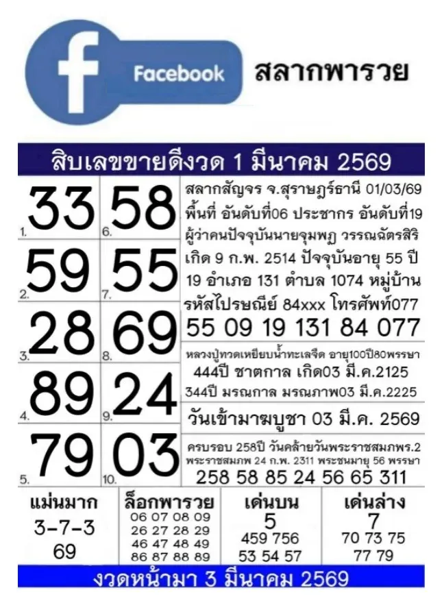 10 เลขขายดี "สลากพารวย" งวดวันที่ 1 มีนาคม 69..อยากรวย รีบส่องเลย!!