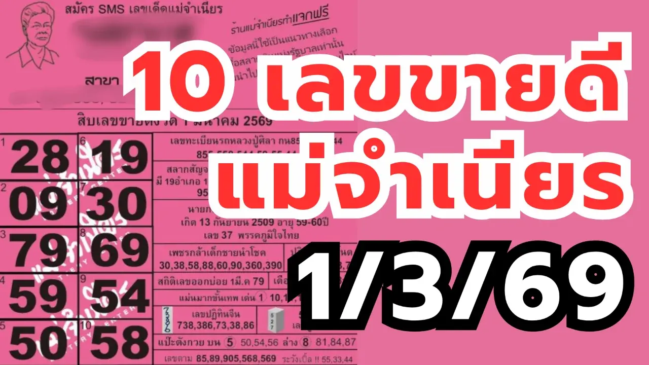 สิบเลขขายดีแม่จำเนียร งวด 1/3/69