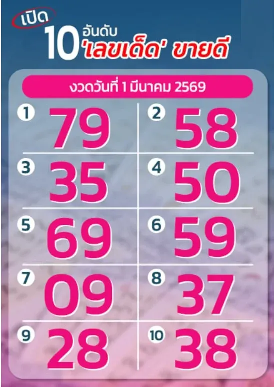 เปิด 10 อันดับเลขเด็ดขายดี งวดวันที่ 1 มีนาคม 69..พรุ่งนี้เลย รีบส่องด่วน!!