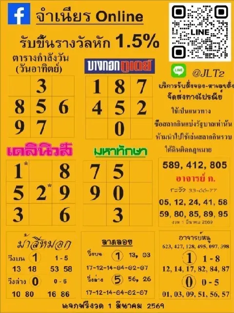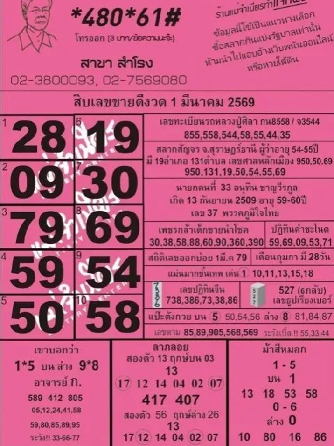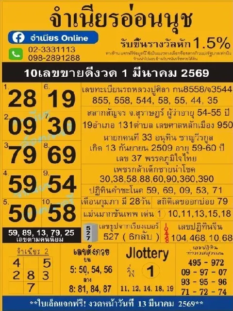 เลขเด็ด เลขมาเเรง เลขดัง "รวมหวยเด็ดสำนักดัง vol.13" งวดวันที่ 1 มีนาคม 2569