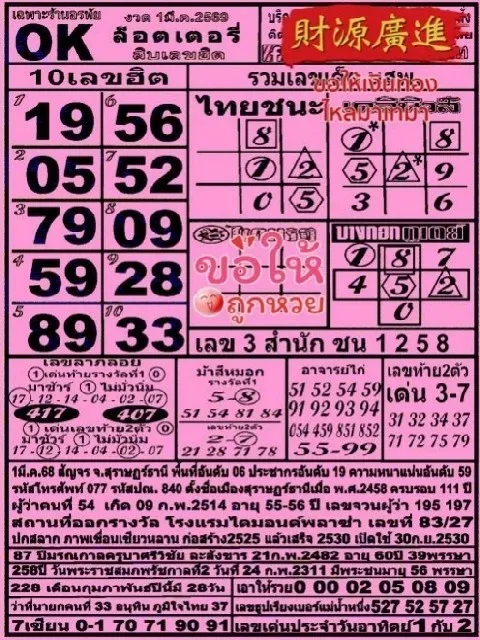 10 เลขขายดี "สลากใบแดง" งวดวันที่ 1 มีนาคม 69 พรุ่งนี้รวย รีบซื้อหวยด่วน!!