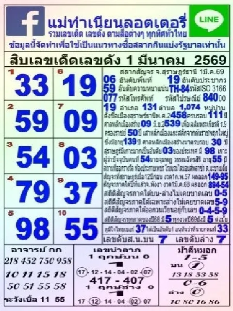 สิบเลขขายดีแม่จำเนียร งวด 1/3/69
