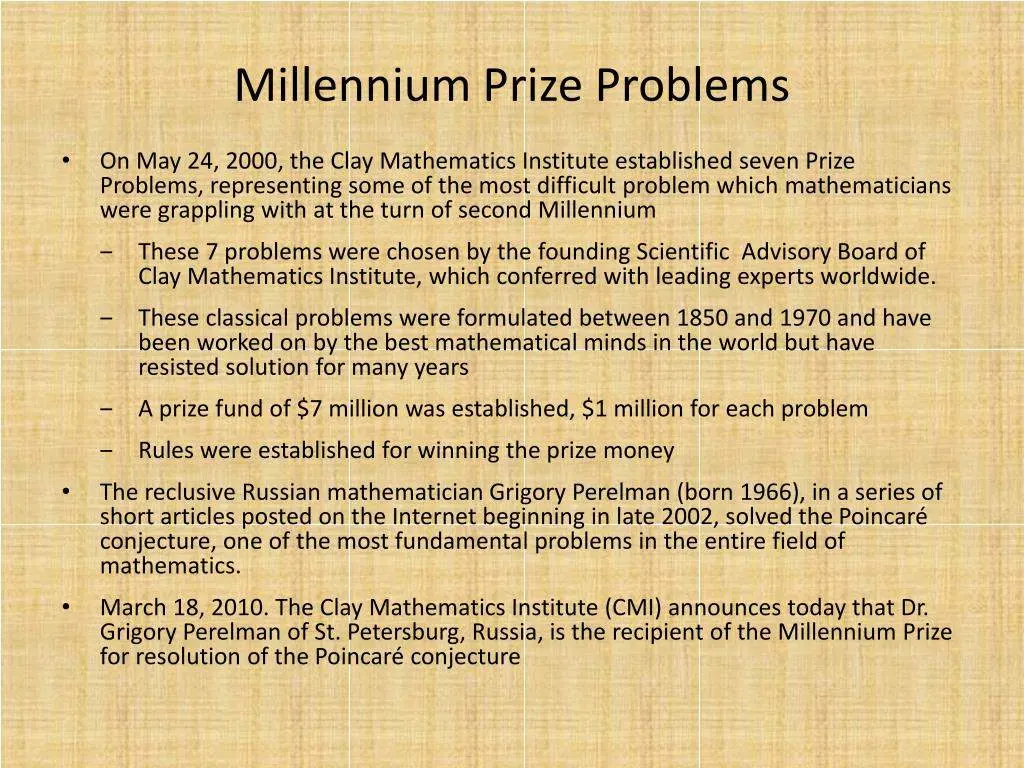 ประกาศในปี 2000 ตั้งรางวัลข้อละ 1 ล้านดอลลาร์สหรัฐฯ