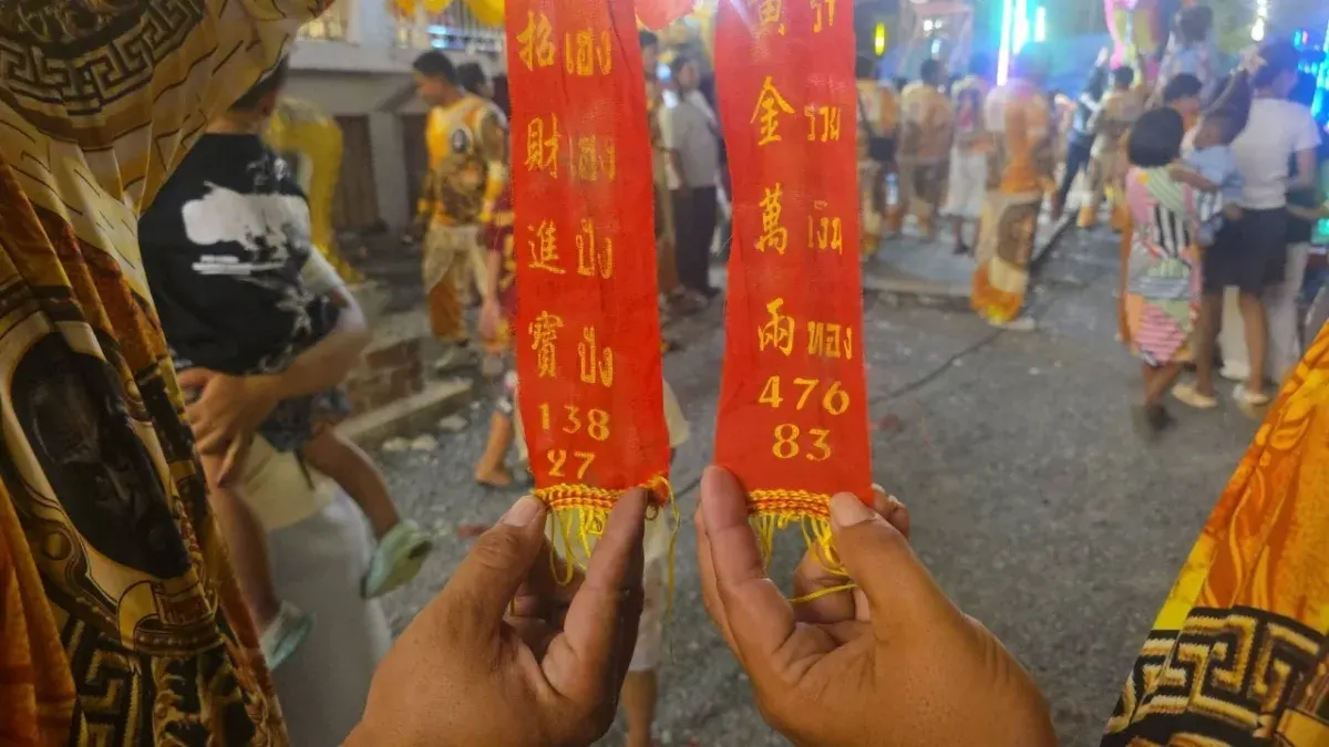 เปิดเลขเด็ดหางประทัด 1 แสนนัด: ก่อนเริ่มการแสดงมีการจุดประทัดบวงสรวงจำนวน 100,000 นัด แบ่งเป็น 2 ชุด ซึ่งบรรดาเซียนหวยต่างรุมล้อมส่องตัวเลขเพื่อนำไปเสี่ยงโชคงวดวันที่ 16 มีนาคม 2569 ดังนี้:
