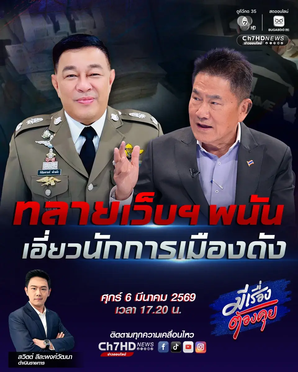 มีเรื่องต้องคุย เย็นนี้กับประเด็นทลายเว็บฯพนัน เอี่ยวนักการเมืองดัง