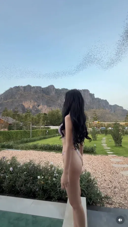 ล่าสุด สาว "เบียร์ เดอะวอยซ์" ก็ได้เผยคลิปชวนว้าว! ขณะที่เธอเห็นค้างคาวฝูงใหญ่กำลังบินผ่านต่อหน้าต่อตา ทำเอาเจ้าตัวถึงกับตื่นเต้นเป็นอย่างมากกับสิ่งที่เห็นตรงหน้าแบบสุดๆ แต่ดูเหมือนงานนี้จะมีหลายคนที่แอบโฟกัสผิดจุดไปหน่อย เนื่องจากชุดที่สาวเบียร์ใส่อยู่นั้นมันช่างสะดุดตาซ่ะเหลือเกิน ซึ่งก็เป็นเจ้าบิกินี่ตัวจิ๋วที่เผยให้เห็นหุ่นแซ่บสุดเป๊ะปัง แถมยังเห็นผิวขาวเนียนผ่อง จะมองยังไงก็ไม่เบื่อ พร้อมกับระบุแคปชั่นสั้นๆ ว่า "ละมันบินมาตอนใส่ชุดเน้"