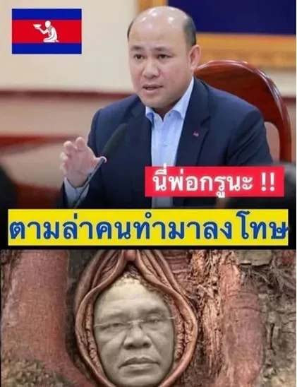 "ฮุน มานี" โกรธจัด! ขู่เอาผิดคนตัดต่อ "ฮุนเซน" โผล่ต้นไม้..โทษฐานหมิ่นผู้นำกัมพูชา ทั้งนี้เมื่อวันที่ 15 มี.ค.69 ที่ผ่านมา ก็มีรายงานข่าวว่า "ฮุน มานี" รองนายกฯ กัมพูชา และเป็นบุตรชาย "ฮุนเซน" รู้สึกไม่พอใจเป็นอย่างมากและจะดำเนินคดีเอาผิดกับผู้ที่กระทำการดังกล่าวโดยไม่สนใจว่าจะอยู่ประเทศไทยหรือกัมพูชาก็จะไม่ละเว้น จะล่าตัวมาลงโทษให้ได้