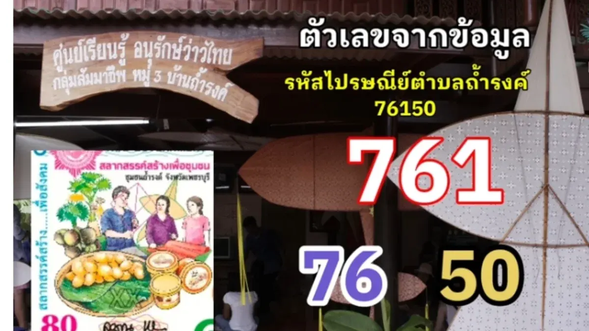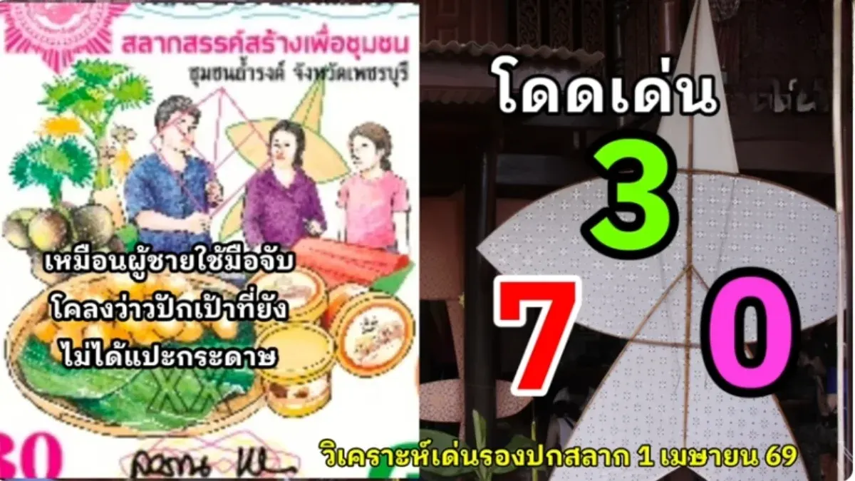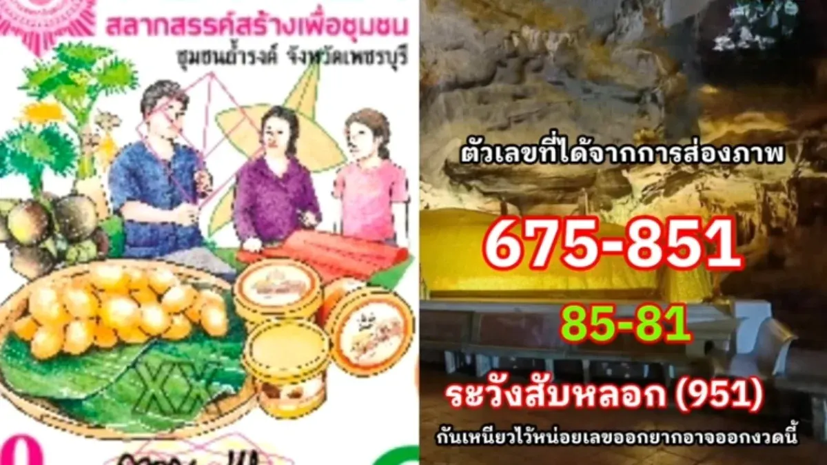 ภาพปกสลากชุมชนบ้านถ้ำรงค์ จังหวัดเพชรบุรีในงวดนี้ เต็มไปด้วยสัญลักษณ์ที่เชื่อมโยงกับวิถีชีวิตดั้งเดิม ทั้งการทำน้ำตาลโตนดและการทำว่าว โดยมีเลขเด่นที่วิเคราะห์ได้คือ 3, 0 และ 7 พร้อมกับเลขชุดจากรหัสพื้นที่และจุดสังเกตในภาพอย่าง 761, 50 และ 51 อย่างไรก็ตาม ข้อมูลทั้งหมดนี้เป็นเพียงการวิเคราะห์ตามทัศนะและความเชื่อส่วนบุคคล เพื่อใช้เป็นแนวทางในการเลือกซื้อสลากกินแบ่งรัฐบาลเท่านั้น