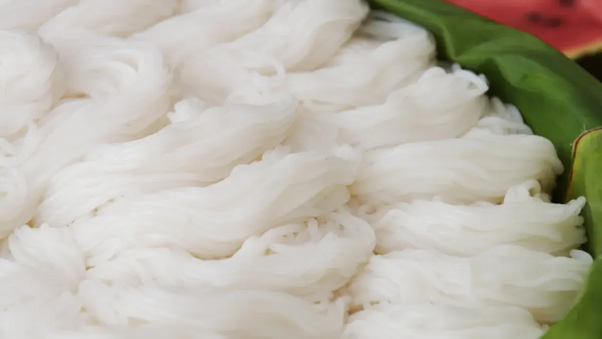 บุญผะเหวด หรือบุญข้าวปุ้น (เดือนสี่): งานเทศน์มหาชาติที่มี "ข้าวปุ้น" (ขนมจีน) เป็นอาหารหลักในการเลี้ยงต้อนรับแขกบ้านแขกเมือง แสดงถึงความเอื้อเฟื้อเผื่อแผ่ของชาวอีสาน