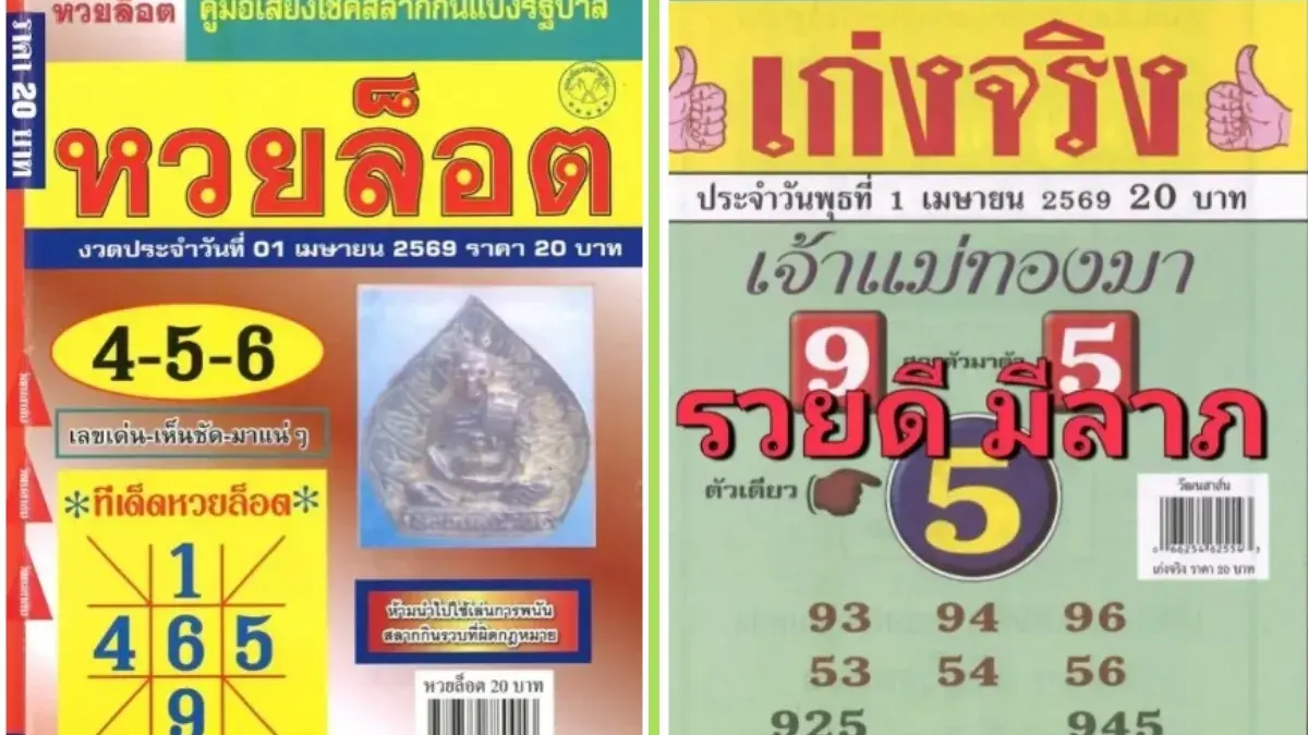 โค้งสุดท้ายก่อนการออกรางวัลสลากกินแบ่งรัฐบาล งวดประจำวันพุธที่ 1 เมษายน 2569 บรรดานักเสี่ยงโชคต่างเฝ้าติดตามตัวเลขจากสำนักดังที่มีสถิติน่าสนใจ โดยในงวดนี้มีชุดตัวเลขที่เน้นพลังมงคลและเลขเด่นที่น่าจับตามองจากสองสำนักหลัก คือ "เก่งจริง" และ "หวยล็อด" ซึ่งสรุปข้อมูลเพื่อเป็นแนวทางได้ดังนี้
