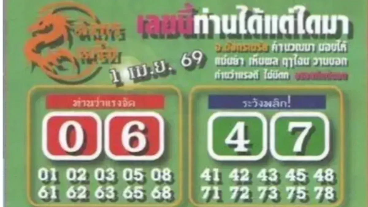 แนวทางจากมังกรเมรัยงวดวันที่ 1 เมษายน 2569 เน้นย้ำไปที่ความสำคัญของเลข 0 และ 6 เป็นหลัก พร้อมทั้งเตือนให้ระวังเลข 4 และ 7 ที่อาจจะสอดแทรกเข้ามาได้ อย่างไรก็ตาม ข้อมูลตัวเลขทั้งหมดนี้เป็นเพียงความเชื่อส่วนบุคคลและเป็นแนวทางในการพิจารณาเท่านั้น ควรเสี่ยงโชคอย่างมีสติและใช้วิจารณญาณประกอบการตัดสินใจ ขอให้ทุกท่านสมหวังและโชคดีได้รับทรัพย์ในงวดนี้
