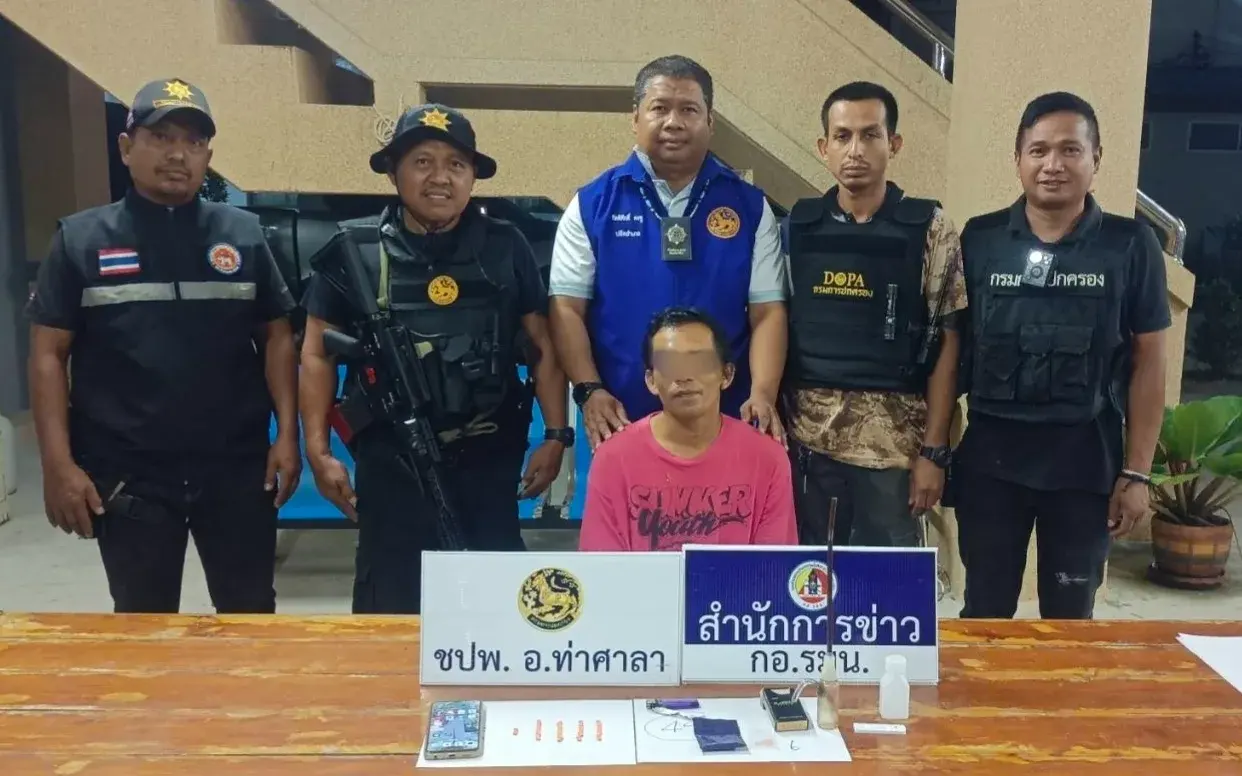 วันที่ 28 มีนาคม 2569 ภายใต้อำนวยการนายประสงค์ จันทร์หยู นายอำเภอท่าศาลา จ.นครศรีธรรมราช พร้อมด้วย นายพศิน กาญจนะ ปลัดอำเภอหัวหน้ากลุ่มงานบริหารงานปกครอง สั่งการให้ชุดป้องกันและปราบปรามยาเสพติด นำโดย นายกิตติศักดิ์ คงชู ปลัดอำเภอหัวหน้าฝ่ายความมั่นคง/เจ้าพนักงาน ป.ป.ส.พร้อมกำลังสมาชิก อส. ออกปฏิบัติหน้าที่ตามนโยบายสำคัญในการเร่งปฏิบัติการกวาดล้างยาเสพติดเชิงรุกทุกพื้นที่ตามนโนบายของรองนายกรัฐมนตรี ภายใต้ชื่อโครงการ “ Quick Big win” รวมพลังรักศรัทธา แก้ไขปัญหายาเสพติดแบบบูรณาการ