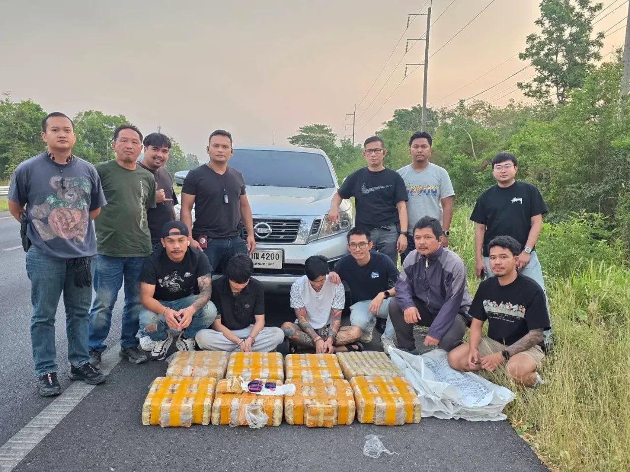 เจ้าหน้าที่เฝ้าติดตามข้ามคืน ก่อนพบชายต้องสงสัย 2 คน กำลังช่วยกันขนกระสอบขึ้นรถกระบะ 4 ประตู เมื่อตรวจสอบพบของกลางเป็น “ยาบ้า” จำนวนมหาศาลถึง 800,000 เม็ด พร้อมโทรศัพท์มือถือ 3 เครื่อง และยึดรถยนต์มูลค่าประมาณ 700,000 บาท