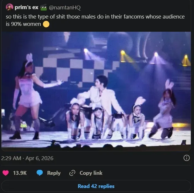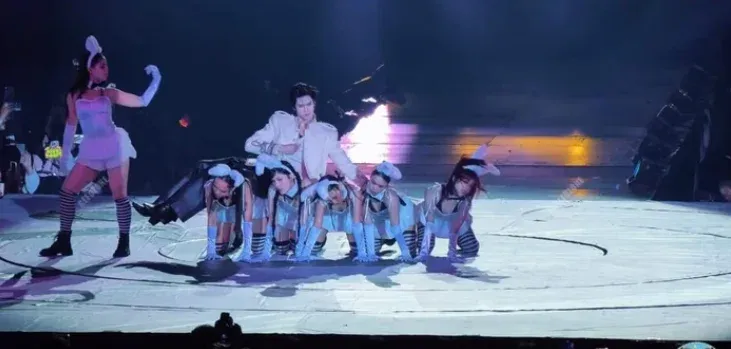 โดยบนเวที "ดัง" ปรากฏตัวพร้อมแดนเซอร์หญิงที่สวมชุดธีมกระต่าย โดยจุดที่ถูกวิพากษ์วิจารณ์คือการออกแบบท่าเต้นและการจัดฉาก ซึ่งมีบางช่วงที่เขานั่งพิง หรือ ใช้ร่างของแดนเซอร์เสมือนเป็น "พร็อพ" รวมถึงท่าทางบางอย่างที่ถูกมองว่าไม่เหมาะสม เช่น การจัดท่าคล้ายคลานสี่ขาเคียงข้างแดนเซอร์หญิง ทำให้ผู้ชมบางส่วนเห็นว่าเป็นการลดทอนคุณค่าของผู้หญิง และ มองว่าแดนเซอร์ถูกใช้เป็นเพียงองค์ประกอบรอง มากกว่าจะเป็นศิลปินผู้แสดงอย่างแท้จริง