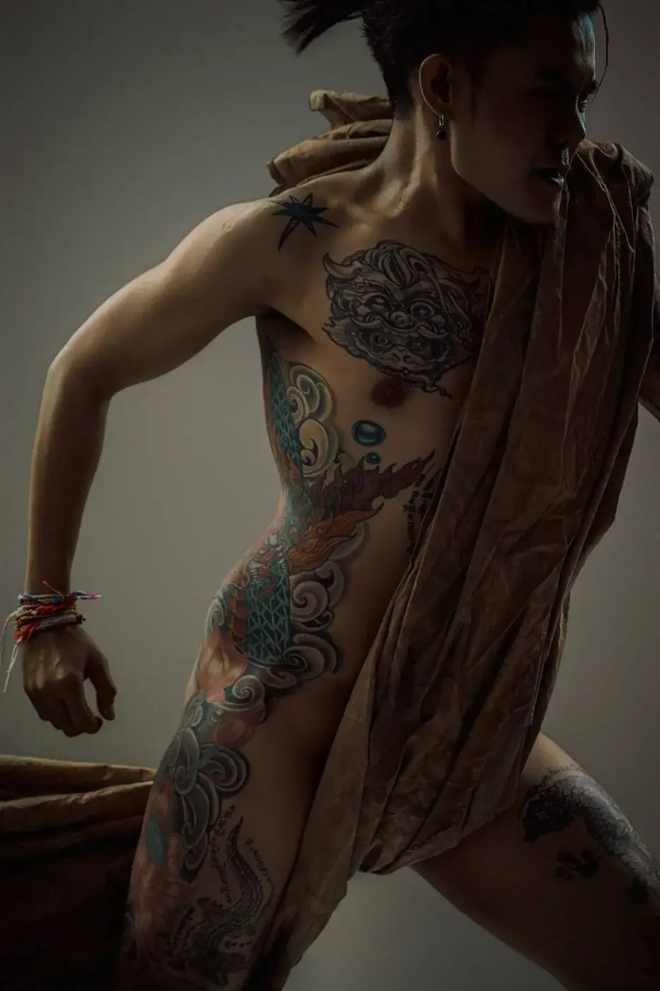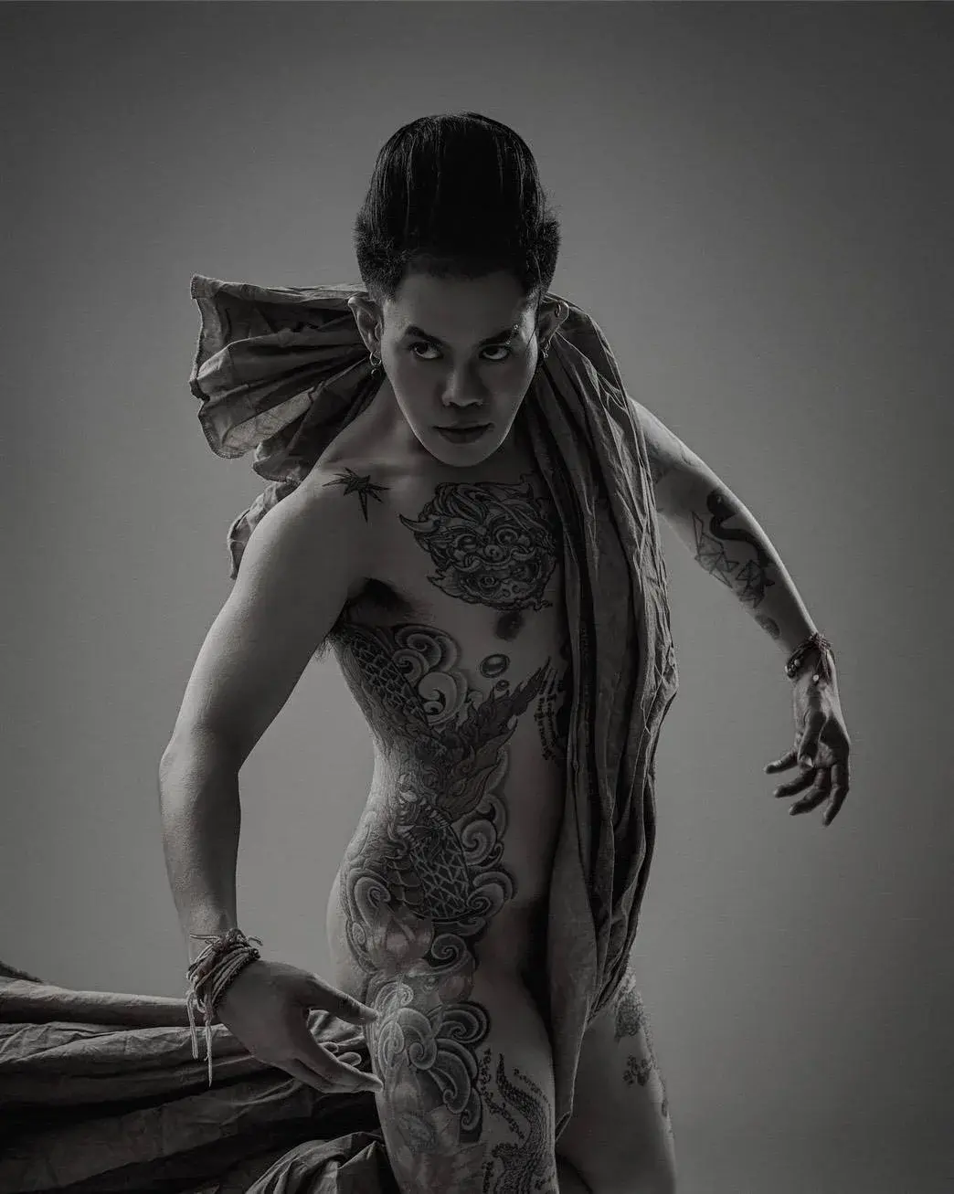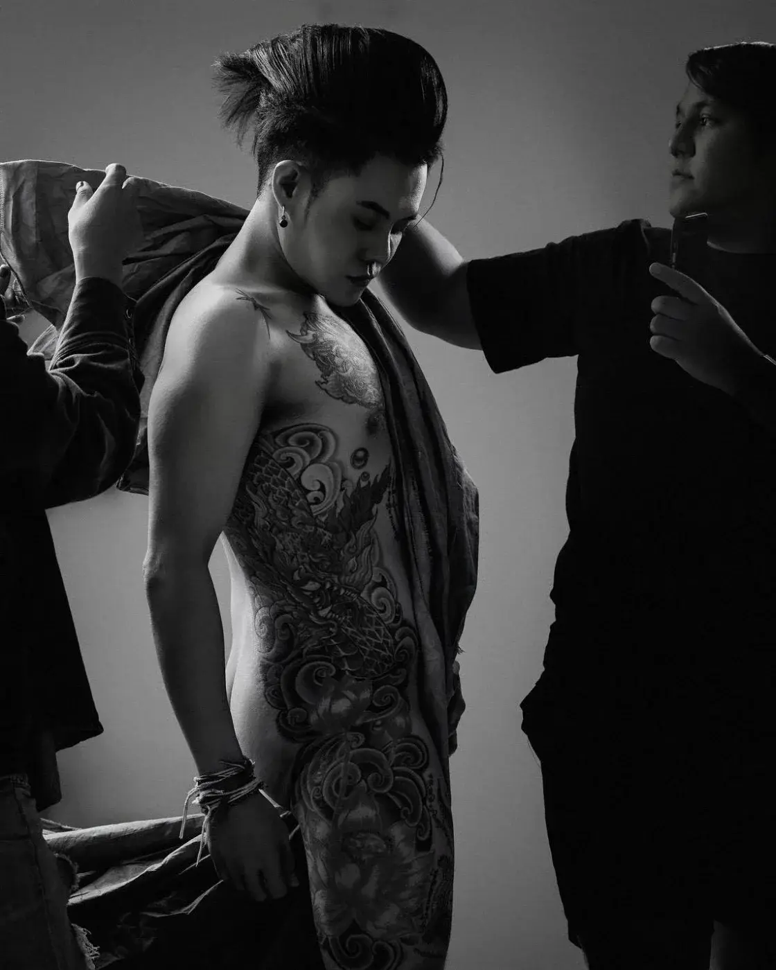 จะว่าไปก็เข้าใจได้—อากาศมันร้อน! แต่ที่ร้อนกว่าคือความปังของลายสักที่ทั้ง “งอน” ทั้ง “แน่น” แบบจัดเต็มทุกพื้นที่ สมกับเป็นศิลปินตัวจริงที่ไม่เคยธรรมดา