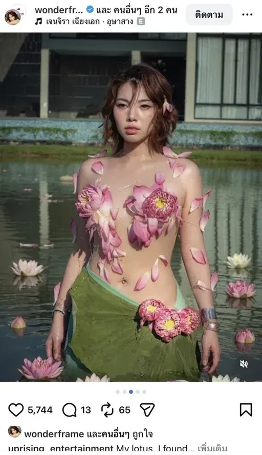 "วันเดอร์เฟรม" สุดหวิว! โพสต์ภาพเดียว..แต่ทำโซเชียลลุกเป็นไฟ ช่วงนี้กระแสดอกบัวกำลังมา มีหลายคนถ่ายภาพคู่กับดอกบัวกันเป็นจำนวนมาก ไม่เว้นแม้แต่แรปเปอร์สาวคนดังอย่าง "วันเดอร์เฟรม" ที่งานนี้บอกเลยว่าสะท้านสระเลยก็ว่าได้ เพราะเธอจัดเต็มมาในลุคดอกบัวสุดหวิว งานนี้ทำเอาไอจีสะเทือน