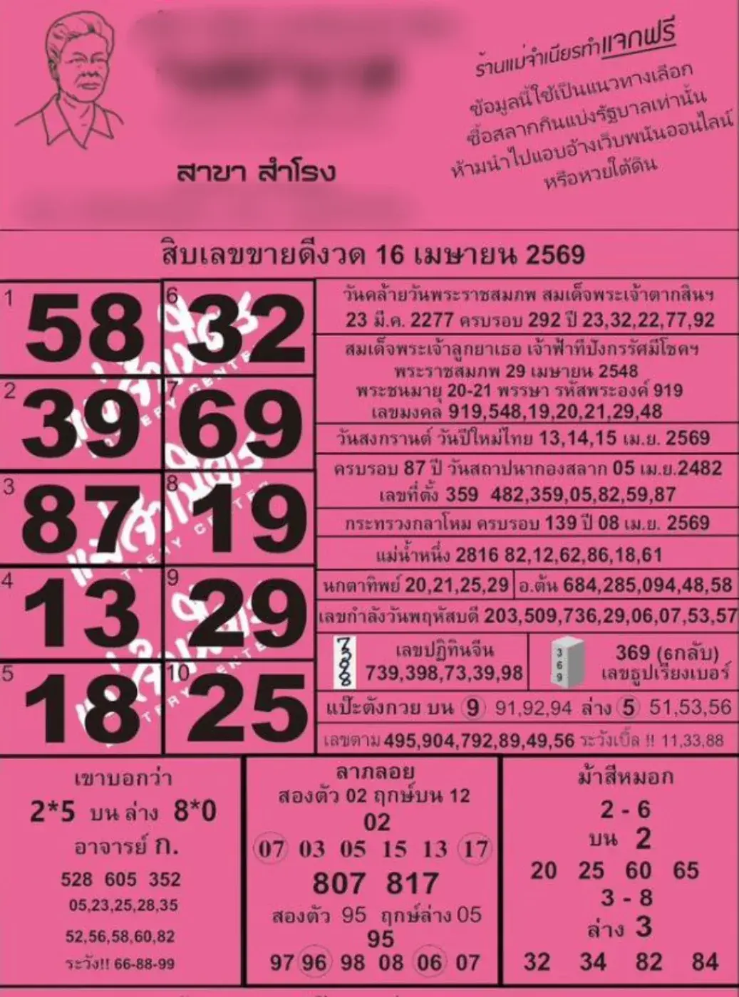 สิบเลขขายดีแม่จำเนียร งวด 16/4/69
