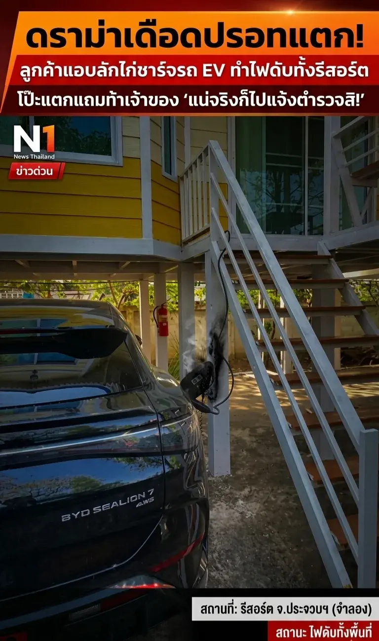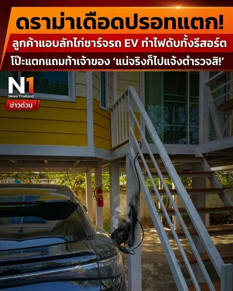 ดราม่าเดือดปรอทแตก! ลูกค้าแอบลักไก่ชาร์จรถ EV ทำไฟดับทั้งรีสอร์ต โป๊ะแตกแถมท้าเจ้าของ "แน่จริงก็ไปแจ้งตำรวจสิ!" ⚡️🔥
