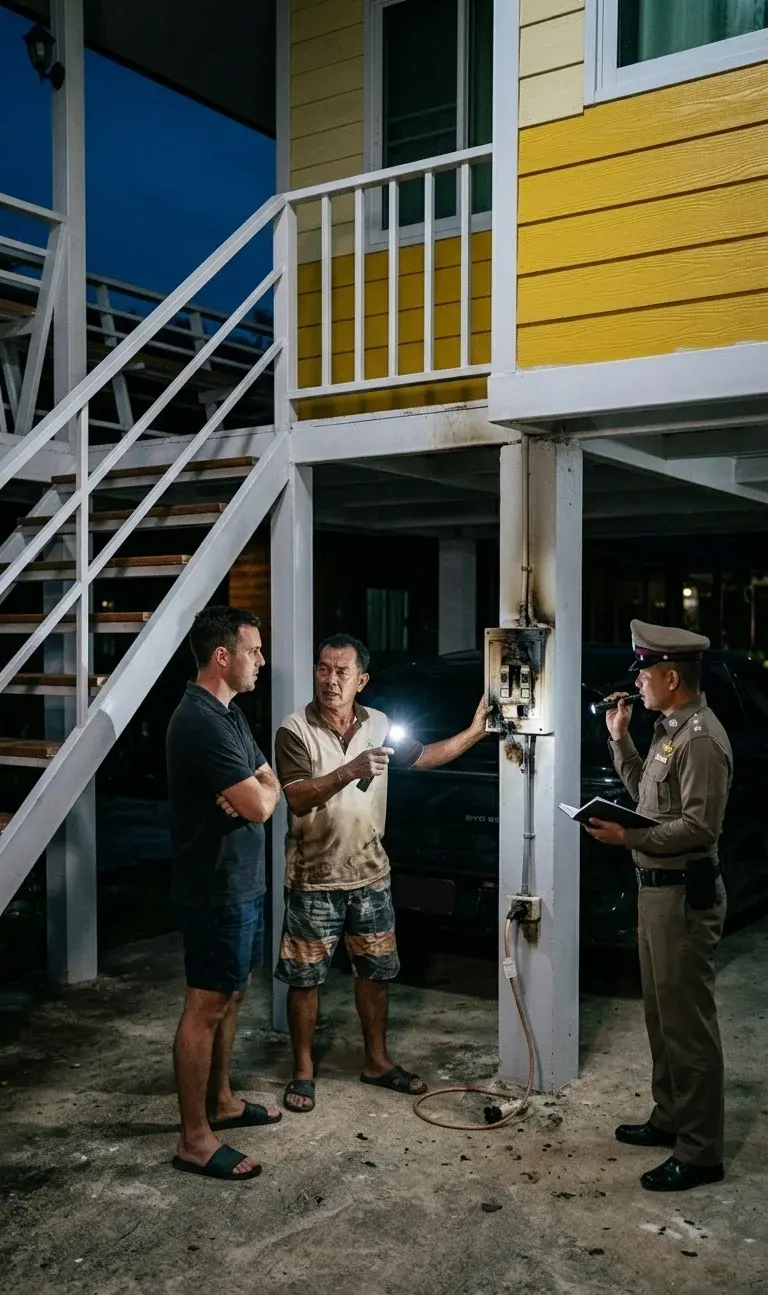 ⚡️ ผลคือ... พัง! เบรกเกอร์ตัดวูบ! พอเจ้าของรีสอร์ตจับได้และเข้าไปเตือนดีๆ ว่าสายไฟของทางที่พักไม่ได้ออกแบบมารองรับไฟมหาศาลขนาดนี้ มันเสี่ยงอันตรายและอาจทำให้เกิดไฟไหม้ได้!