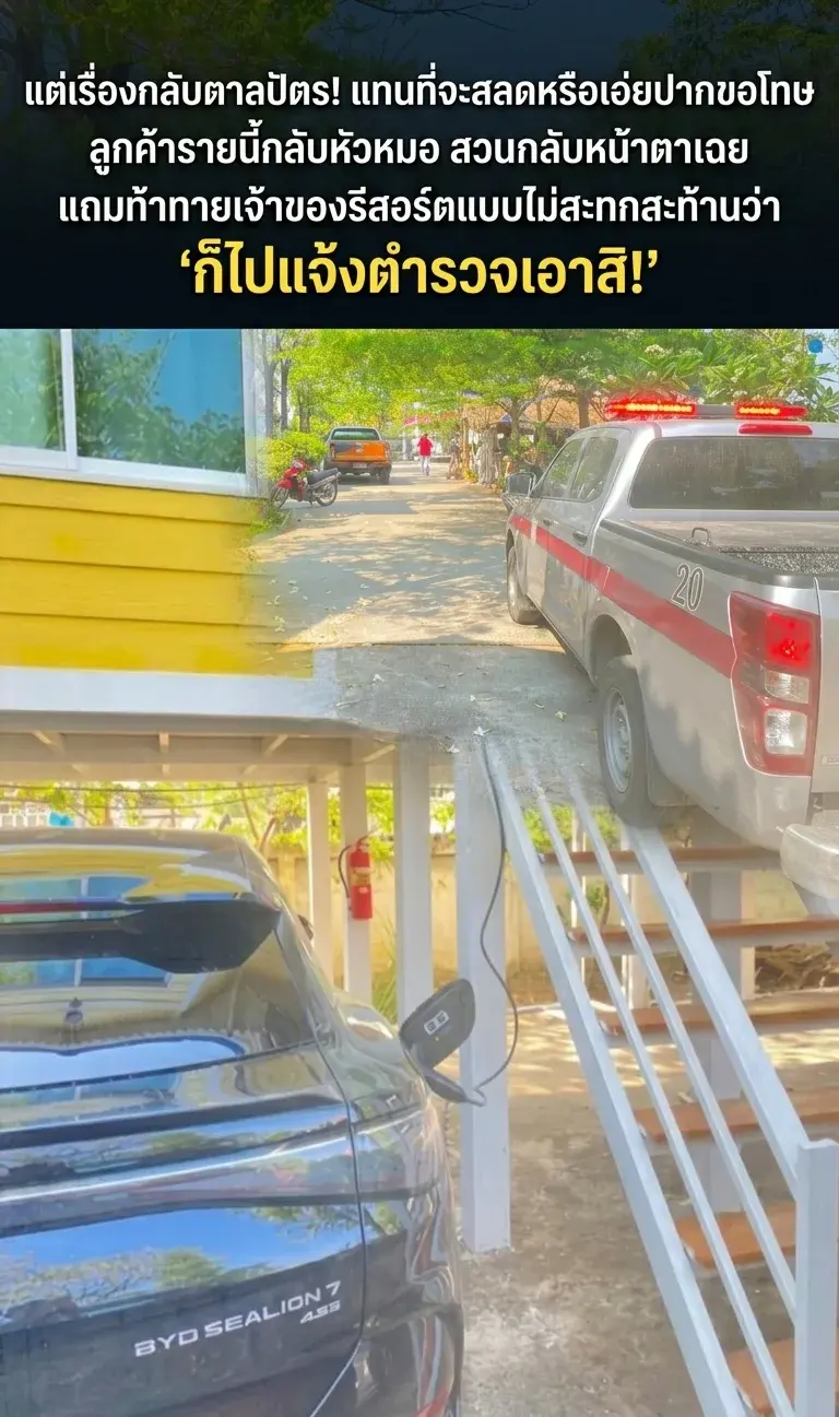🔥 แต่เรื่องกลับตาลปัตร! แทนที่จะสลดหรือเอ่ยปากขอโทษ ลูกค้ารายนี้กลับหัวหมอ สวนกลับหน้าตาเฉย แถมท้าทายเจ้าของรีสอร์ตแบบไม่สะทกสะท้านว่า "ก็ไปแจ้งตำรวจเอาสิ!"