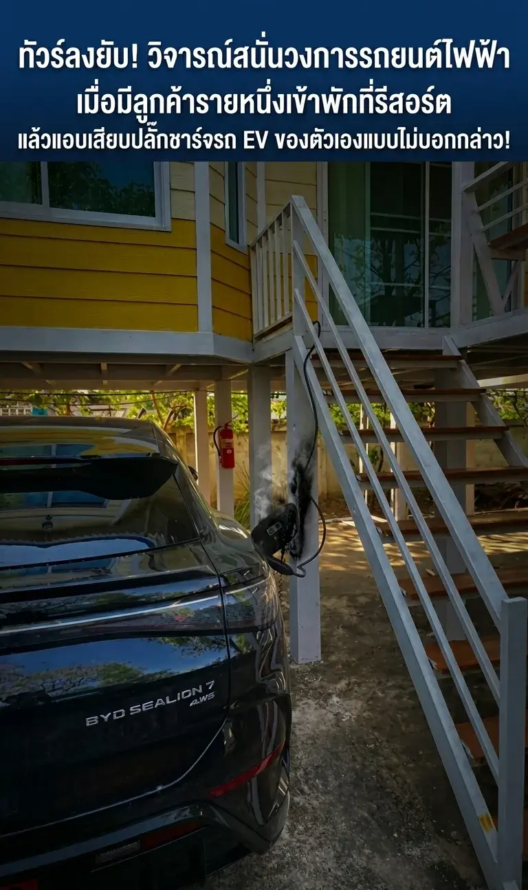💥 ทัวร์ลงยับ! วิจารณ์สนั่นวงการรถยนต์ไฟฟ้า เมื่อมีลูกค้ารายหนึ่งเข้าพักที่รีสอร์ต แล้วแอบเสียบปลั๊กชาร์จรถ EV ของตัวเองแบบไม่บอกกล่าว!