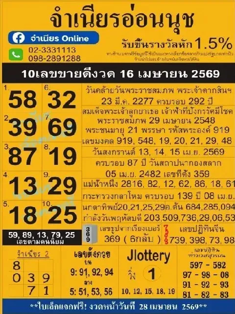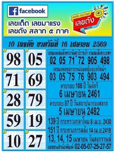 เปิดเลขลับ... จับจังหวะ "เลขล็อก" รับสงกรานต์ งวด 16 เมษายน 2569