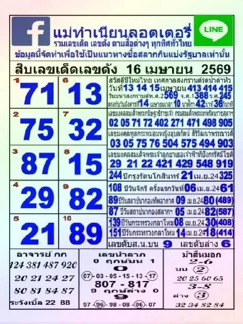 ส่องเลขเด็ด!! มัดรวม 10อันดับ เลขเด็ดขายดีงวดวันที่ 16 เมษายน 2569