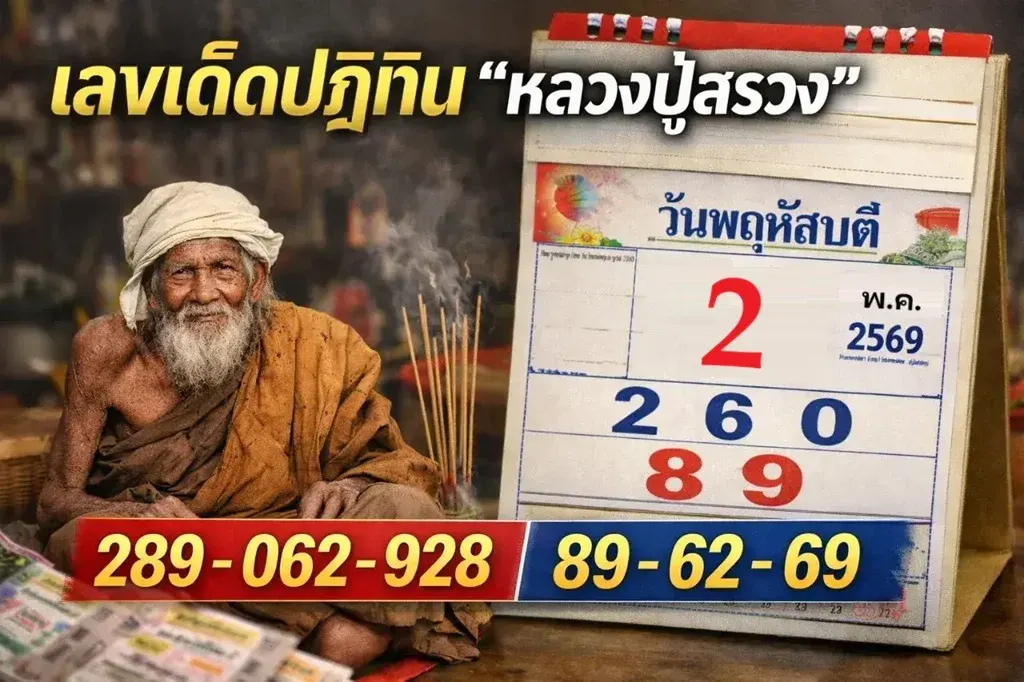 สำหรับหวยในงวดนี้ก็ออกในวันเสาร์ ที่ 2 พฤษภาคม 2569 เราลองมาส่องดูที่ปฏิทิน "หลวงปู่สรวง" ก็จะพบว่า ตัวเลขที่ให้มานั้นมันก็ประกอบไปด้วยเลข 6 - 8 - 2 - 9 - 0 ทั้งนี้ก็สามารถจับคู่เป็นตัวเลขต่างๆ ได้ดังนี้ เลขท้าย 3 ตัว คือ 089 - 286 - 926 - 892 - 609 ส่วนเลขท้าย 2 ตัวที่ได้มีดังนี้ 89 - 86 - 26 - 92 - 09 - 69 - 28 - 88 - 06 - 62 ทั้งนี้ตัวเลขที่ให้นั้นทุกท่านสามารถเอาไปสลับจับคู่กันได้ตามชอบใจ และใช้เป็นแนวทางในการเสี่ยงโชคสำหรับงวดนี้ได้