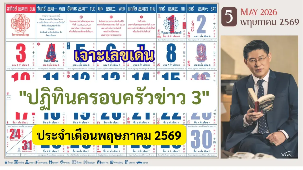 เริ่มต้นเดือนพฤษภาคม 2569 ด้วยความคึกคักของเหล่านักเสี่ยงโชคที่ต่างตั้งตารอแนวทางเลขเด็ดจากปฏิทินจีนยอดฮิตอย่าง "ปฏิทินครอบครัวข่าว 3" ประจำปี 2569 ซึ่งเป็นที่กล่าวขวัญถึงความแม่นยำจากการตีความลายเส้นตัวเลขที่ซ่อนอยู่ในตารางวันที่ โดยในเดือนนี้มีรูปภาพของ "คุณสรยุทธ สุทัศนะจินดา" ผู้ประกาศข่าวชื่อดังปรากฏอยู่บนปฏิทิน สร้างความสนใจให้แฟนข่าวเป็นอย่างมาก
