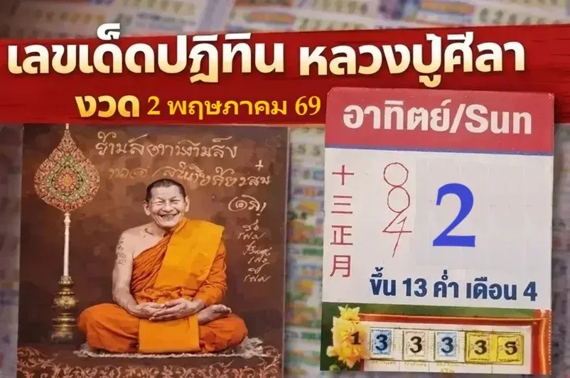 เลขเด็ดปฏิทิน "หลวงปู่ศิลา" งวดวันที่ 2 พฤษภาคม 69..เลขเด่นตัวไหน ส่องได้เลย!
