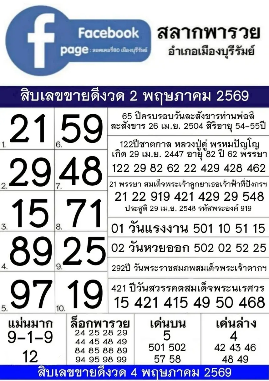 10 เลขขายดี "สลากพารวย" งวดวันที่ 2 พฤษภาคม 69..อยากรวย ซื้อหวยด่วน!!