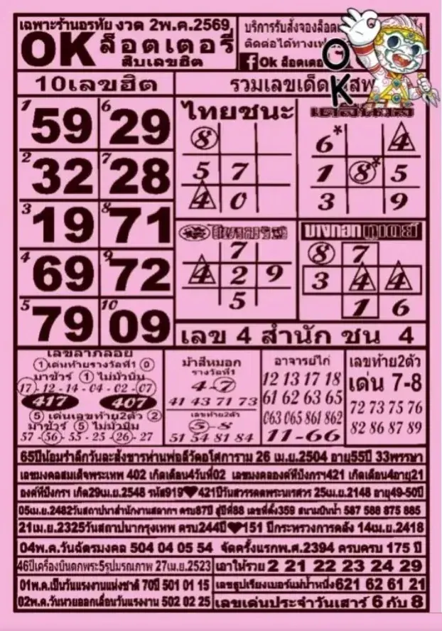 10 เลขฮิต "OK ล็อตเตอรี่" งวดวันที่ 2 พฤษภาคม 69..ซื้อหวย รวยรับวันแรงงาน!!