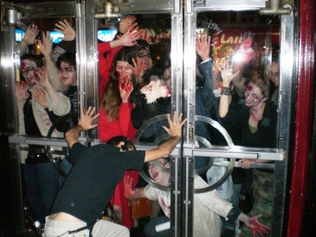 พวกซอมบี้กินกันเองรวมไปถึงมีการข่มขืนผู้หญิงกระทำชำเราด้วย เหมือนกับว่าพวกมันกำลังขยายเผ่าพันธุ์ซอมบี้ยังใงยังงั้น แล้วพวกมันก็กำลังพังประตูบ้านอีกหลายๆบ้านด้วยที่ปิดอยู่เพื่อที่จะเข้ามาหาอาหารอันโอชะตามบ้านกินให้ได้นั้นเอง ดูท่าทางซอยสาดพร้าวตอนนี้เต็มไปด้วยขุมนรกดีดีเข้าให้แล้ว พวกมันกำลังกินมนุษย์กันอย่างเอร็ดอร่อยซะด้วยสิ