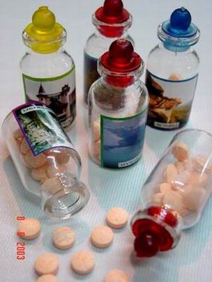 ข้างในจะเป็นวิตมินซีอมๆเล่นๆ เปรี้ยวๆหวานๆ ขวดละ 1 บาท หรือ 2 บาทนี่แหละ สะสมขวดกันสนุกสนาน