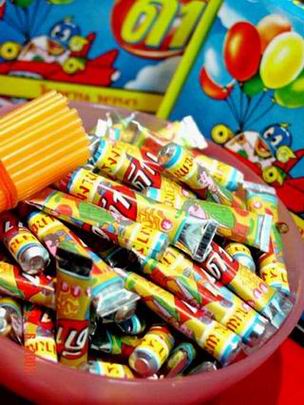 เป็น ข้าวโพดอบกรอบรสนมๆ ส่วนมากไม่ค่อยมีใครกินขนมมันหรอก จะซื้อเอาแต่ของแถมในซองกันซะมากกว่า ความทรงจำเลือนลาง จำไม่ได้แล้วว่า แถมของเล่นอะไร รู่แต่ว่าซื้อมาก็ทิ้งขนม แล้วอาของเล่นมาอย่างเดียว