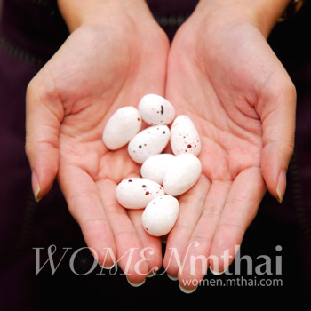 เป็นเม็ดกลมๆ เรียงซ้อนกัน รสชาดกำลังดีเลย กินกันไปจนลิ้นเปื่อยกันเลยก็มี