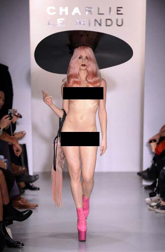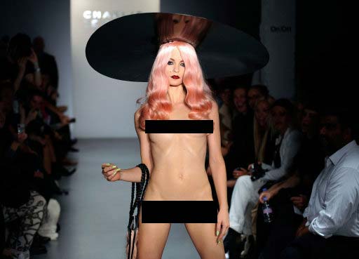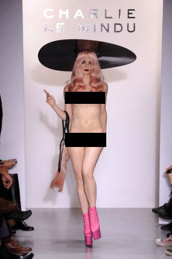 นางแบบเปลือย เดินแฟชั่นแบบเปลือยเปล่าล่อนจ้อนเหลือแต่เครื่องประดับภายนอก