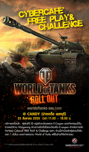 ติดตามรายละเอียดการแข่งขันเพิ่มเติมได้ที่ http://worldoftanks-sea.com/news/461-cybercafe-free-play-challenge-th-week-2/