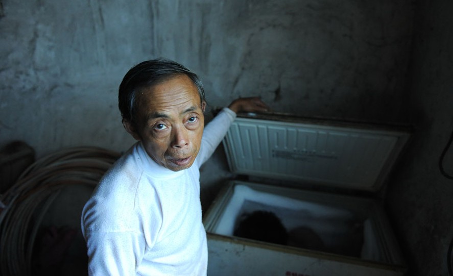 คุณพ่อใจสลายท่านนี้ชื่อว่า เทียน ซูหมิง วัย 54 ปี ยอมรับความสูญเสียลูกชายอันเป็นที่รักไม่ได้ แม้จะล่วงเลยมานานกว่า 6 ปีแล้ว เขานำร่างของลูกชายที่ยังคงอยู่ในสภาพสมบูรณ์เก็บไว้ในตู้แช่ไว้เป็นอย่างดี แม้หลายคนจะมีความคิดว่าสิ่งที่พ่อคนนี้ทำมันไม่ถูกต้อง แต่ใครเล่าจะเข้าใจความรู้สึกของพ่อคนนี้ได้