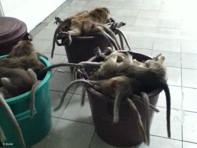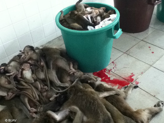 BUAV (องค์กรพิทักษ์สัตว์ระดับสากล) เผยภาพคลิปน่าสลด เป็นภาพลิงในฟาร์ม NOVEPRIM ในสาธารณรัฐมอริเซียส ทำการฆ่าลิงจำนวนหลายร้อยตัวเนื่องจากน้ำหนักมากเกินไปไม่เหมาะในการทำการวิจัย ซึ่งซากลิงที่ถูกฆ่าเหล่านี้จะถูกเก็บทิ้งไว้ในถังและพื้นเพื่อรอการทำลาย