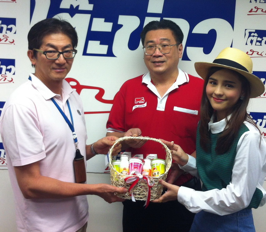นายสุชาติ จริยาเลิศศักดิ์ รองผู้อำนวยการ องค์การส่งเสริมกิจการโคนมแห่งประเทศไทย (อ.ส.ค.) (กลาง) พร้อมด้วย นักแสดงสาว ออม-สุชารัตน์ มานะยิ่ง ดาราไทยที่เป็นที่รู้จักและชื่นชอบของชาวจีน เดินสายประชาสัมพันธ์รายการเรียลริตี้ประเทศไทย ชื่อดัง “เผิงโหย่ว” ที่ได้เผยแพร่ผ่านเว็บไซต์ http://i.youku.com/pengyouchannel ซึ่งเป็นเว็บไซต์วัยรุ่นจีนที่นิยม พร้อมประชาสัมพันธ์การท่องเที่ยวเชิงเกษตรฟาร์ม โคนมไทย-เดนมาร์ค และผลิตภัณฑ์นมไทย-เดนมาร์ค ที่ได้เป็นผู้สนับสนุนการถ่ายทำรายการ เมื่อเร็วๆนี้