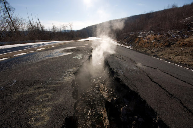 มันเคยเป็นเมืองที่ขึ้นชื่อว่าอุดมไปด้วยแร่ถ่านหิน แต่ในปี ค.ศ. 1962 ได้เกิดเหตุการณ์ที่แปลกประหลาดขึ้น เมื่อจู่ก็ได้มีเปลวไฟออกมาจากเหมือนถ่านหินอย่างรุนแรง จนทำให้สภาพอากาศเมืองนี้ร้อนระอุ และถูกปกคลุมไปด้วยหมอกควันอยู่ตลอดเวลา จนปัจจุบันนี้เปลวไฟนั้นก็ยังปะทุอยู่อย่างต่อเนื่อง (ความเห็นส่วนตัวนะ ผมว่าไอ้คนเหมือนมันคงก่อกองไฟต้ม ม่าม่า ใต้เหมืองถ่านหิน มันก็เลยระเบิด -..-)