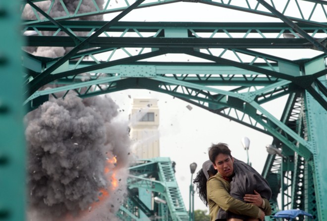 และวันนี้ เรามีสกู๊ป ฉากระเบิดสะพานพุธ ที่ทำเอา โกโบริ-อังศุมาลิน ต้องลุยฝุ่นสุดมอมมาฝากกันเป็นพิเศษ กว่าจะมาเป็นฉากใหญ่สะพานพุทธอย่างที่ทุกคนได้ชม “ผกก.เรียว” และ ทีมงานได้ทำการบ้านนานนับเดือน ตั้งแต่ลงพื้นที่จริงสถานที่ถ่ายทำ ออกแบบดีไซน์ฉาก รวมทั้งเก็บรายละเอียดเหตุการณ์ต่างๆที่จะเกิดขึ้นเพื่อให้ตรงตามยุคสมัยมาก ที่สุด นอกจากนั้นยังมีการทำงานบนแบบจำลองย่อส่วนอย่างละเอียดของสะพานพุทธเพื่อ กำหนดจุดตั้งกล้องถ่ายทำหลายจุดรอบด้าน เพราะด้วยเวลาถ่ายทำจริงที่จำกัดตั้งแต่ตี 5- 10โมงเช้า จะต้องถ่ายทั้งฉากระเบิด ฉากการสัญจรไปมาของผู้คนนับร้อย และ ยังมีฉากวิ่งหลบของคู่พระ-นาง อีกด้วย เรียกว่าเป็นงานหินไม่ใช่เล่น แต่ด้วยความที่ผู้กำกับ “เรียว” ได้ไปเป็นผู้ช่วยผู้กำกับท่านมุ้ย- ม.จ. ชาตรีเฉลิม ยุคล ในภาพยนตร์เรื่อง นเรศวร ทำให้ได้นำวิชาความรู้มาใช้ในเรื่องนี้อย่างเต็มที่