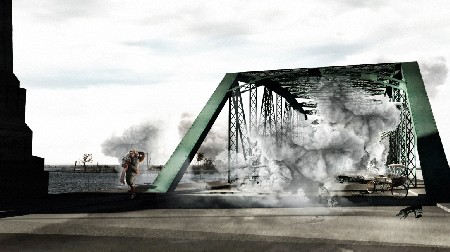 และ ซีนสำคัญที่ทำให้นักแสดงทั้งคู่ ได้รับเสียงปรบมือจากทีมงานอย่างกึกก้องเป็นฉากสุดท้ายที่ทั้งคู่จะต้องอยู่ ในเหตุการณ์ระเบิด ซึ่งการถ่ายทำฉากนี้ เป็นช่วงใกล้เวลาที่สะพานพุทธจะเปิดการจราจรตามปกติทุกฝ่ายจึงต้องทำงานแข่ง กับเวลาเป็นเท่าตัว เมื่อผู้กำกับสั่งแอ็คชั่น “โกโบริ –อังศุมาลิน” ที่เตรียมพร้อมอยู่แล้วก็จูงมือวิ่ง ทีมเอฟเฟ็คต์ระเบิดรอพร้อม เมื่อทั้งคู่วิ่งเข้ามาในจุดที่กำหนด ทีมเอฟเฟ็กต์ก็จัดการกดระเบิด เสียงดังตูม ทำเอาทั้งคู่สำลักฝุ่นจริงๆ ด้วยสปิริต และ สมาธิทางการแสดงของทั้งคู่ก็ทำให้ได้ภาพออกมาสวยงามสมใจทุกฝ่าย ซึ่งผู้กำกับเปิดใจว่า “สะพานคือสัญลักษณ์ของการข้ามฝั่ง จึงเลือกให้สะพานมีแผลด้วยการทิ้งระเบิดลงและตอบโจทย์ได้ทั้งหมดของเรื่อง ซึ่งตามประวัติศาสตร์จริงสะพานพุทธก็ถูกระเบิดเช่นกัน โล่งใจที่การถ่ายทำผ่านไปได้ด้วยความราบรื่น ได้ภาพอย่างที่ต้องการทั้งหมด "