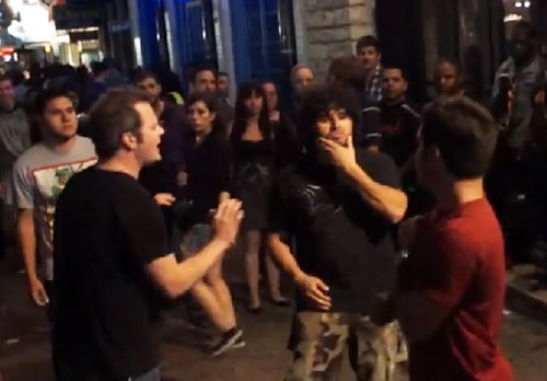 คลิปวิดีโอหนุ่มเสื้อดำ ดื่มสุราจนเมา แล้วหาเรื่องคนที่ไปเที่ยวงาน SXSW 2013 Festival 6th Street Austin Texas ในรัฐเท็กซัส สหรัฐอเมริกา ผลสุดท้ายโดนหนุ่มนักท่องเที่ยวอีกคนปล่อยหมัดสอยเข้าเต็มหน้า หนุ่มเมาล้มทั้งยืน หมดสติคาถนน รอให้ตำรวจมาจับกุม ท่ามกลางเสียงปรบมือของเหล่าอเมริกันมุง