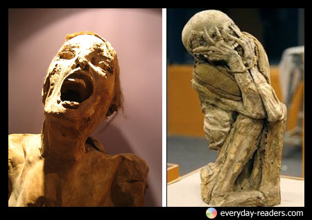 ในช่วงที่โรคมีการระบาดหนักที่สุด ร่างคนตายมากมายจะถูกฝังอย่างรวดเร็วเพื่อป้องกันไม่ให้เชื้อแพร่กระจาย รวมถึงบางคนที่ยังไม่เสียชีวิตก็ถูกฝังทั้งเป็นด้วย ดังนั้นมัมมี่บางตัวจึงมีสีหน้าหวาดกลัวและทุกข์ทรมานเป็นสีหน้าสุดท้ายก่อนจะตาย