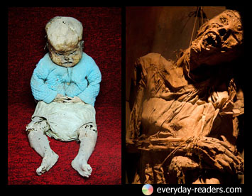 ปัจจุบันพิพิธภัณฑ์นี้มีมัมมี่จัดแสดงอยู่ 119 ร่าง มีทั้งที่เป็นเด็กทารกไปจนถึงคนแก่ บางร่างก็มีท่าทางแปลกๆ และบางร่างก็ยังคงสวมใส่เสื้อผ้าเดิมของตัวเอง พิพิธภัณฑ์นี้ยังมีร่างมัมมี่ที่เล็กที่สุดในโลก เป็นร่างของตัวอ่อนในครรภ์ของผู้หญิงซึ่งเสียชีวิตจากโรคอหิวาตกโรค