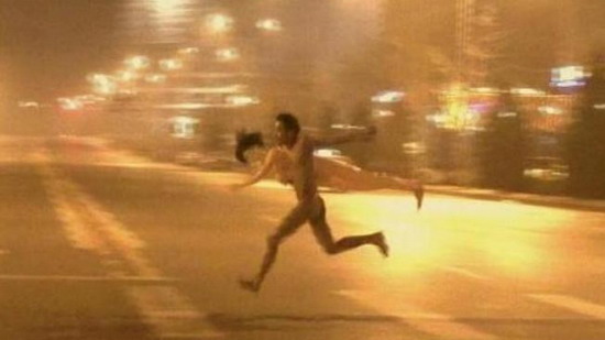 ภาพปริศนา!สาวเปลือยวิ่งตามหนุ่มแบกตุ๊กตายางกำลังเป็นที่ถกเถียงในจีน